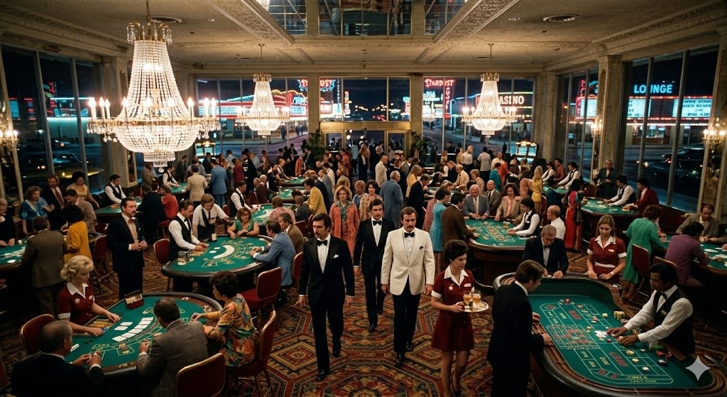 Kamera-ajot: Pitkät otokset kasinosalien läpi (kuten Scorsesella) korostivat paikan massiivisuutta.